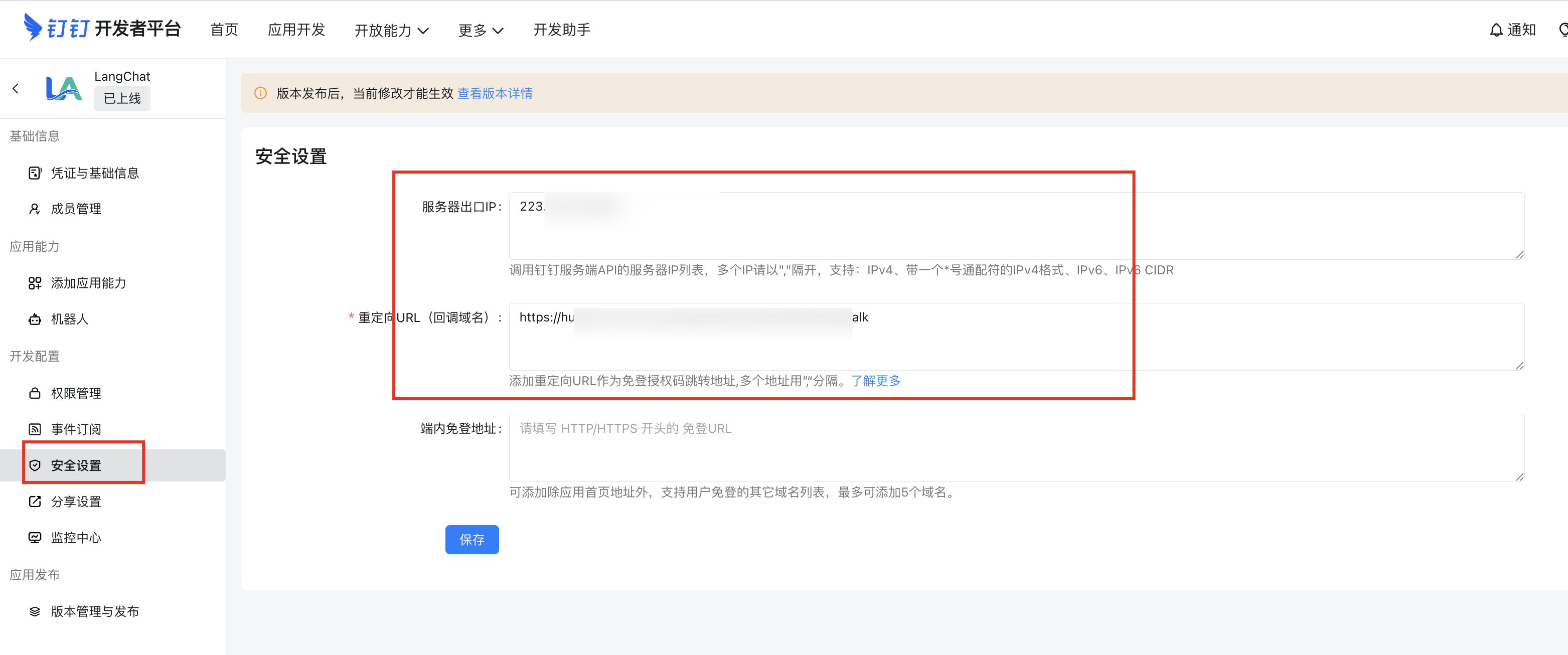 注意:LangChat Pro最新版本,将采用Stream模式,不需要再指定回调地址,使用钉钉卡片方式交互