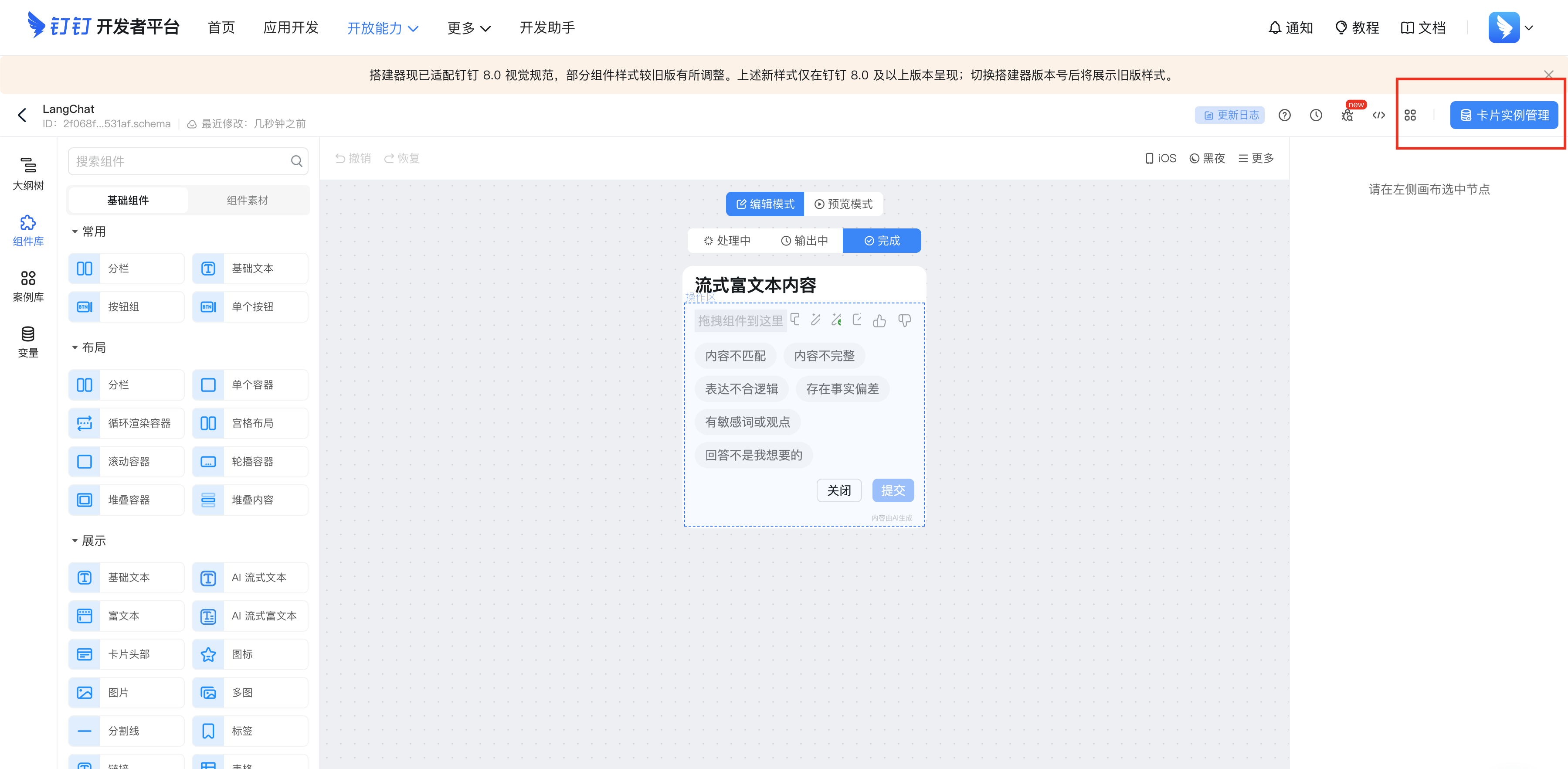 Stream模式使用AI卡片,可以实现流式响应、Markdown自动渲染的功能