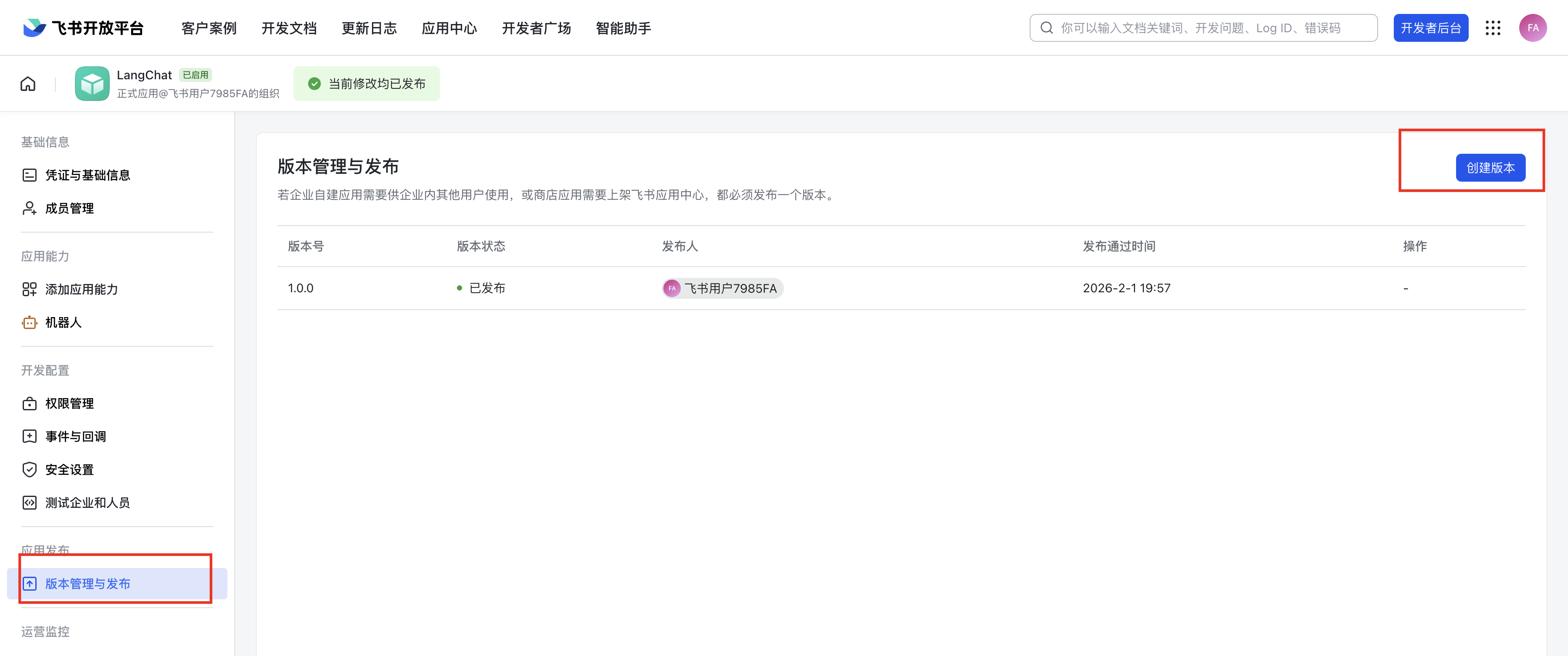 如上都配置后,需要发布新版本。保证这个机器人是已经发布的。