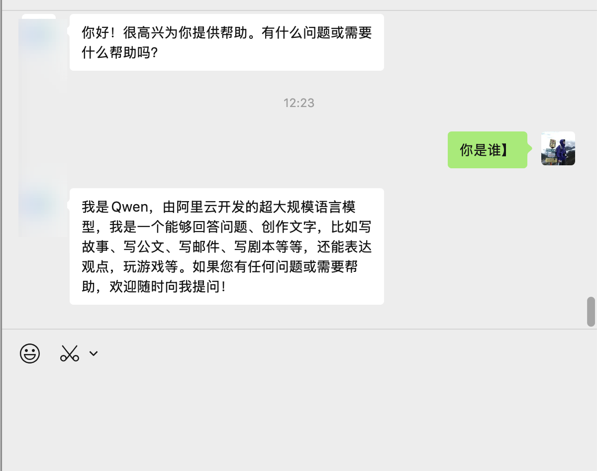 如下,微信公众号就成功接入了我们的LangChat Agent应用了。