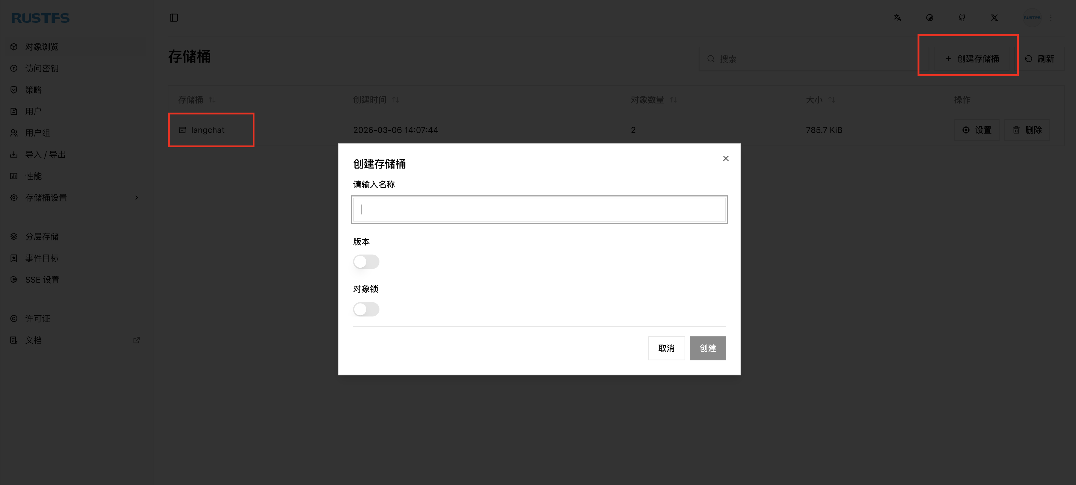 - Bucket 需预先创建:MinIO/RustFS/S3 等需要提前创建好 bucket
