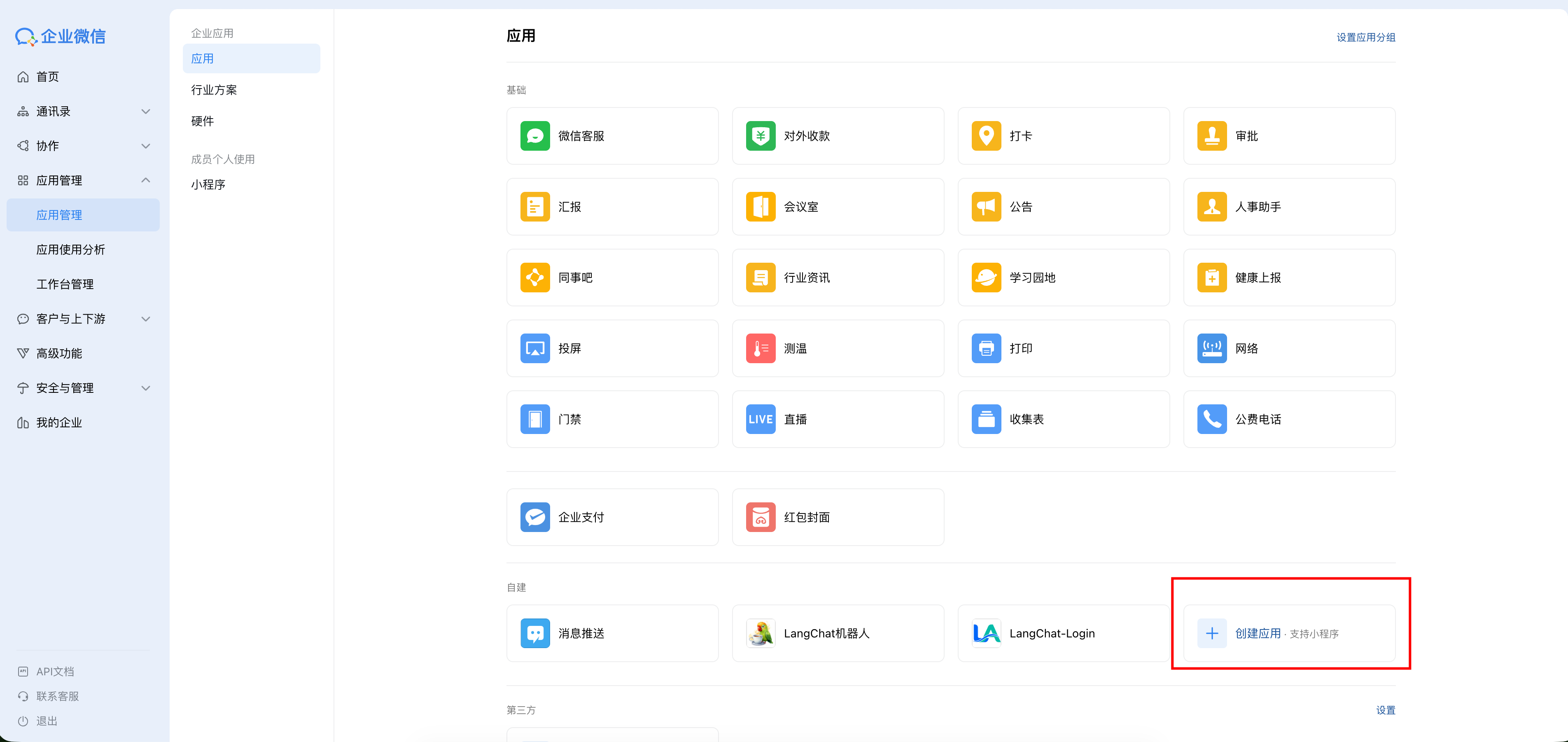 - 进入「应用管理」→「自建应用」