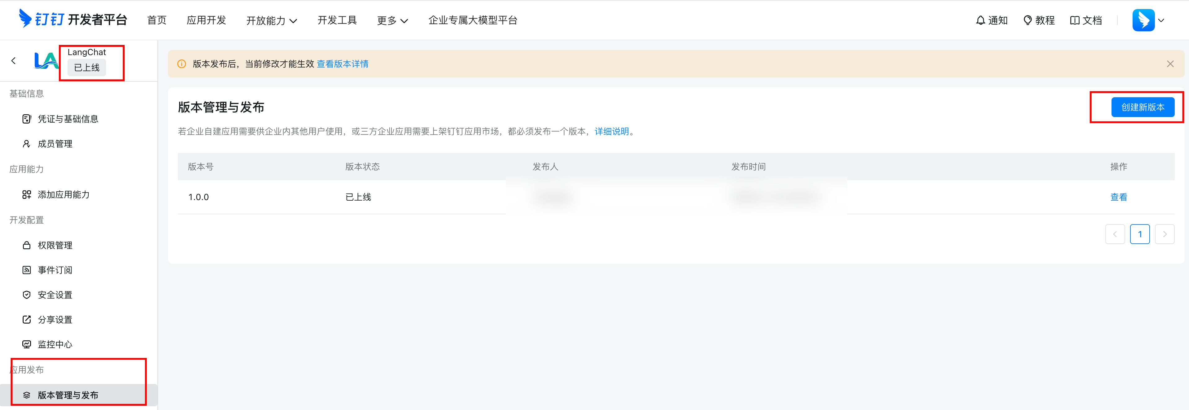 - 创建新版本并填写版本信息