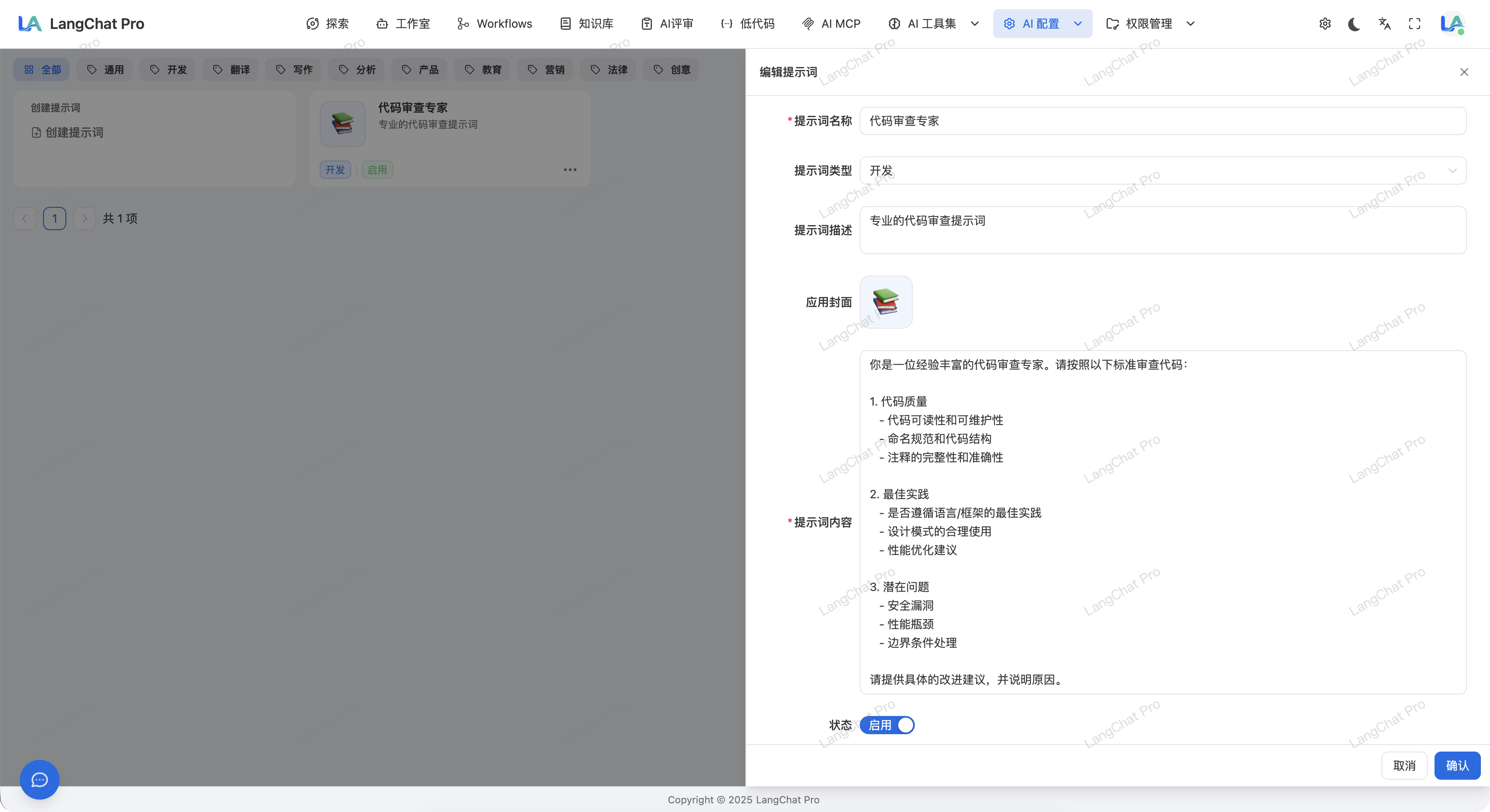本模块用于定义提示词库,配置好的提示词将在本系统所有位置均可引用关联使用。