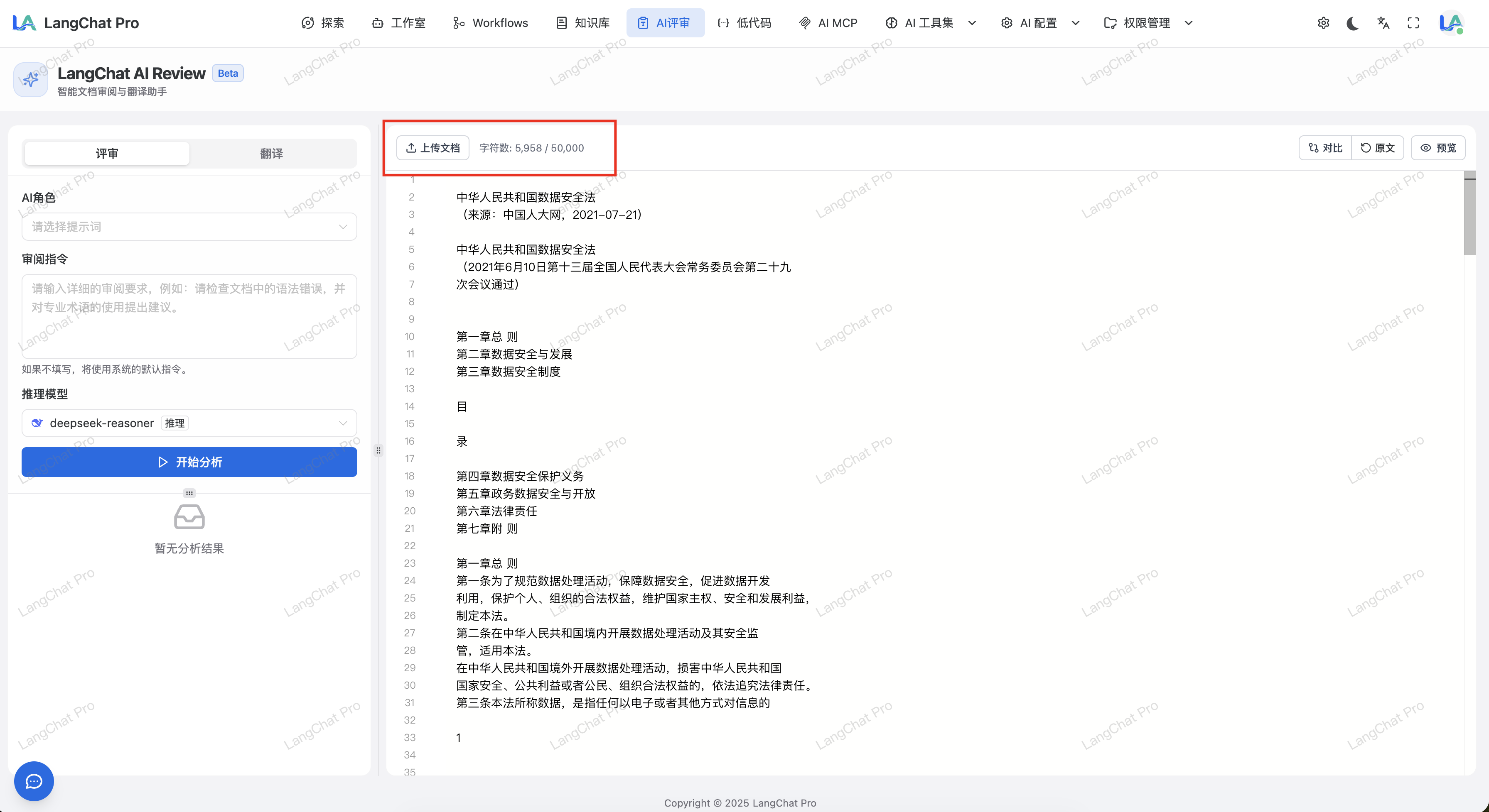 点击”开始分析”按钮,AI 将全量分析文档内容(此过程可能较耗时)。