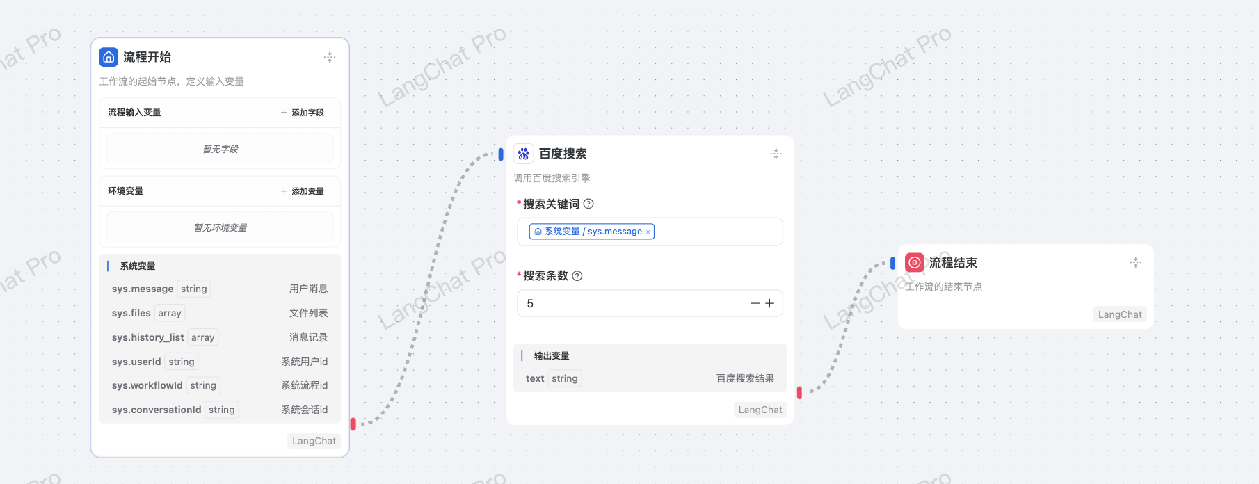 原因分析: 百度搜索是一个工具节点,此节点只是把搜索内容写入到工作流上下文,此时前端用户看不到任何输出消息。